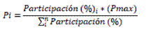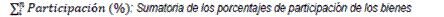 Participación (%)i: Porcentaje de participación del bien